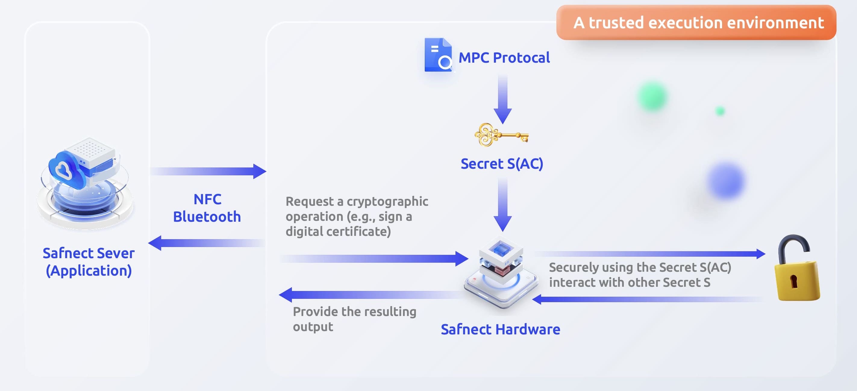- Securely complete transactions with just a tap using Safnect's cold wallet.