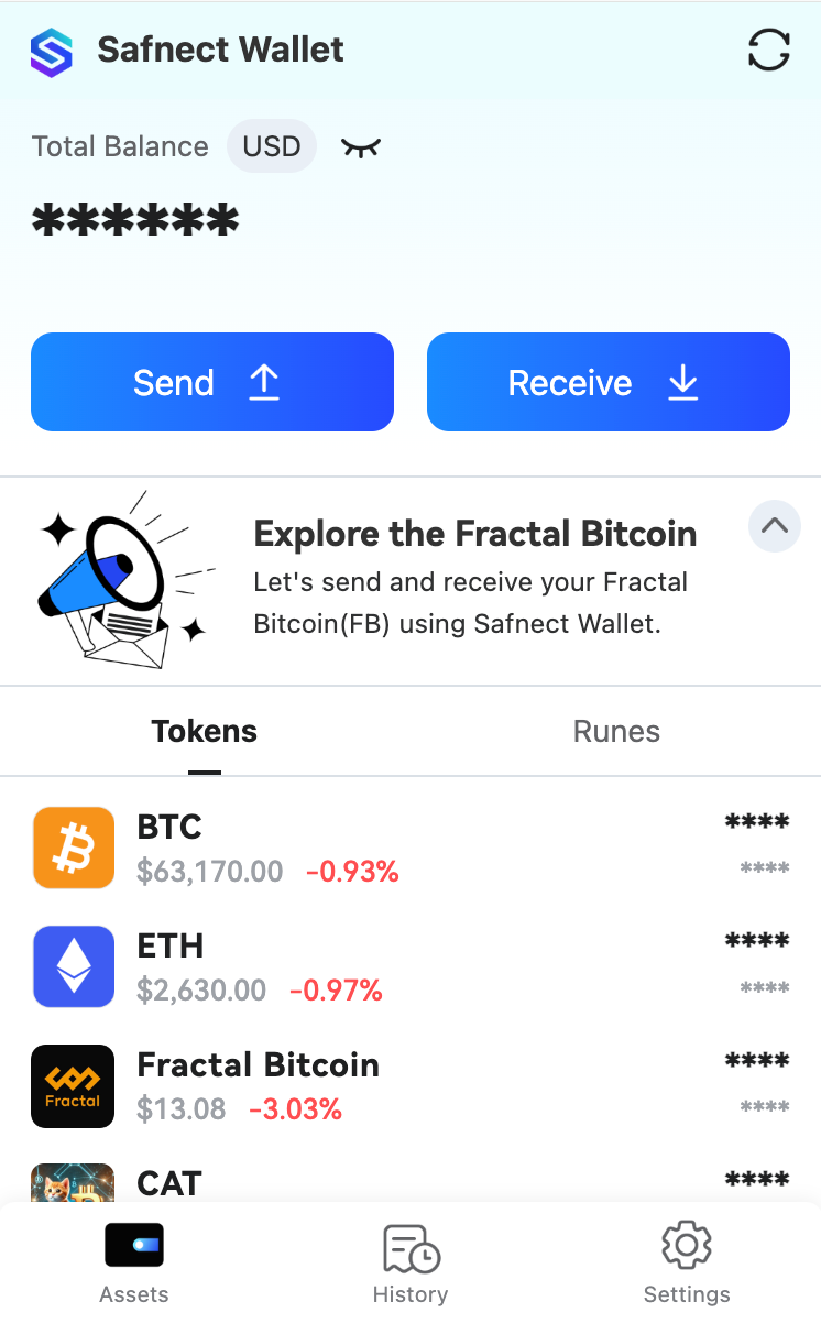 Easily send and receive your BTC, Runes, Fractal Bitcoin, and CAT