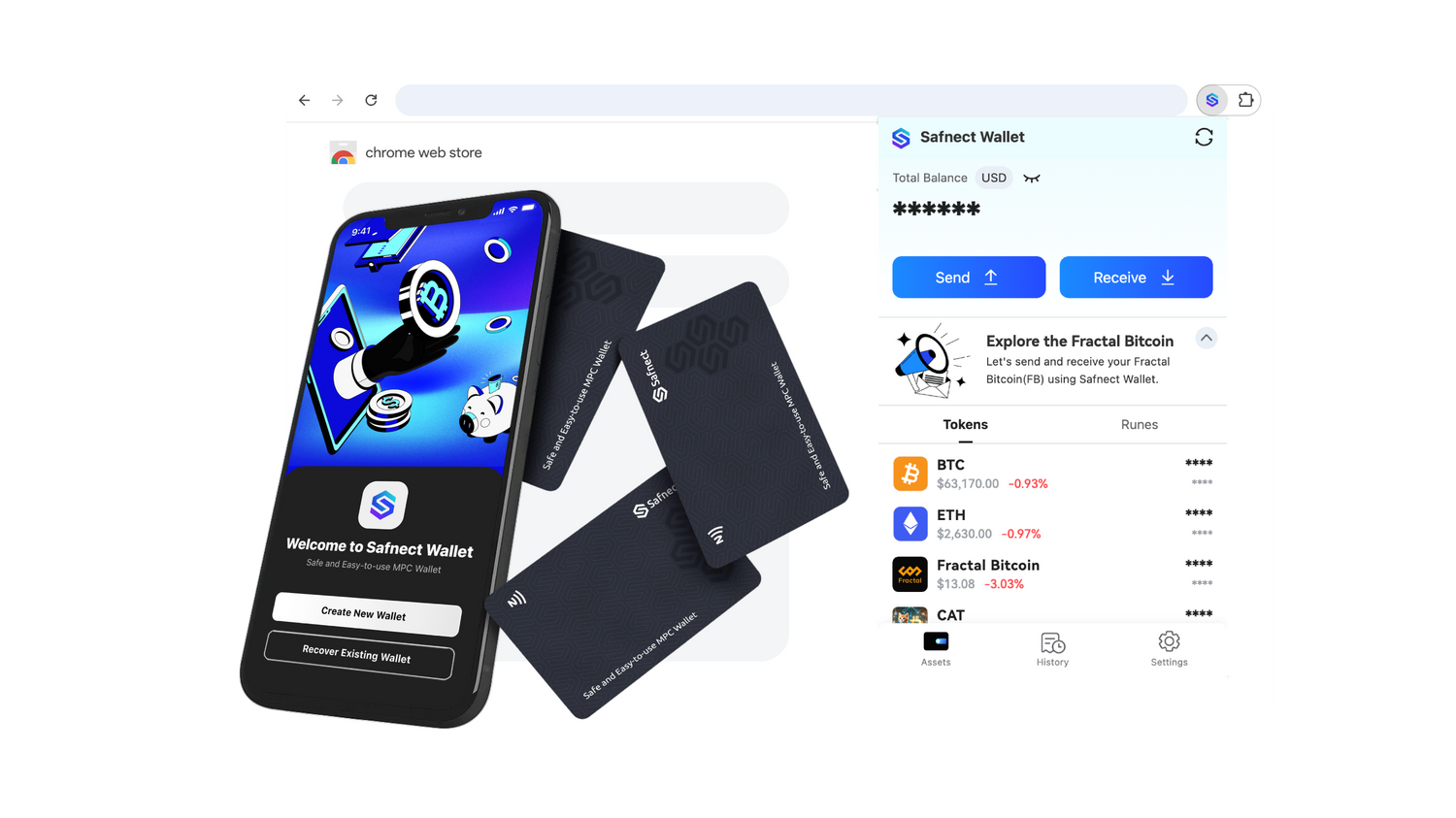 - Easily store, send, and receive BTC, Runes, ETH, Fractal Bitcoin, CAT, and more on Chrome Extension and Android App.